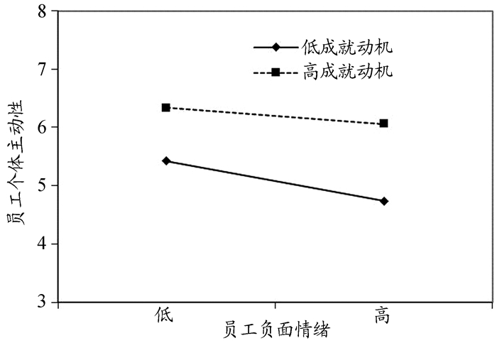 H6:员工负面情绪对个体主动性的负向影响受到成就动机的调节作用,成就动机越强,这种负向影响越弱;反之越强。