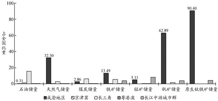 图 3 成渝地区主要矿产基础储量占全国比重 |
