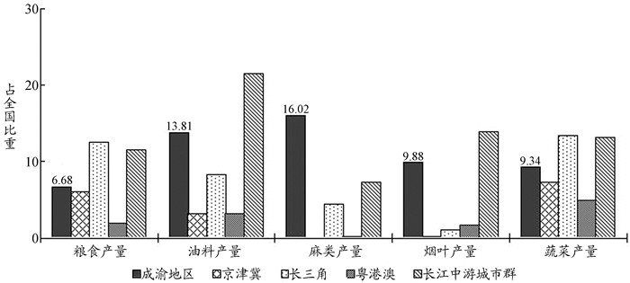 图 2 2022年成渝优势工业品产出情况与主要城市群对比 |