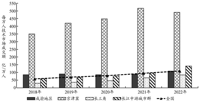 图 7 成渝地区与主要城市群的科技成果转化规模对比 |