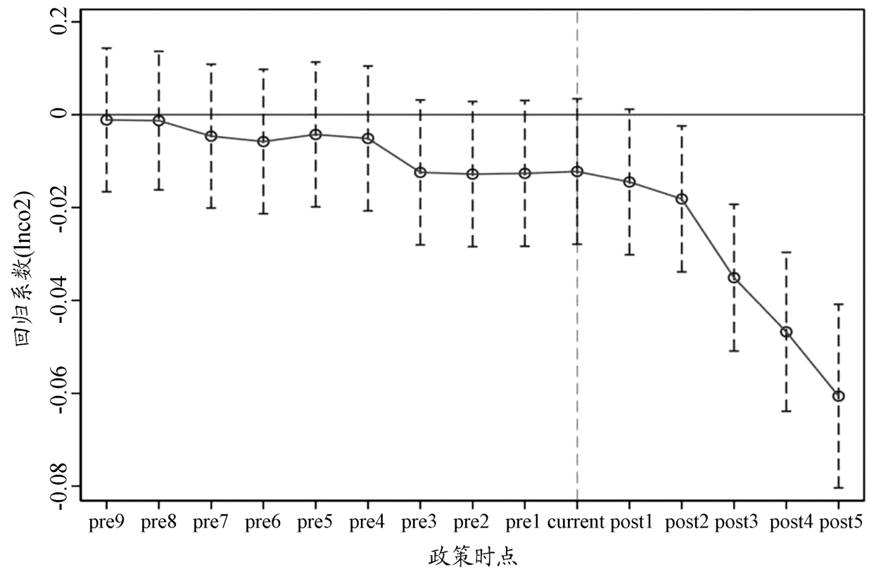 本文提出假设2:数字基础设施对碳排放的影响可能存在时滞性,但随着时间推移,数字基础设施对城市碳排放的抑制作用逐渐增强。