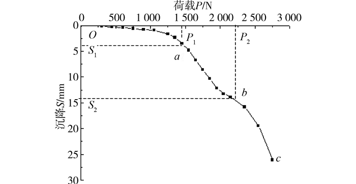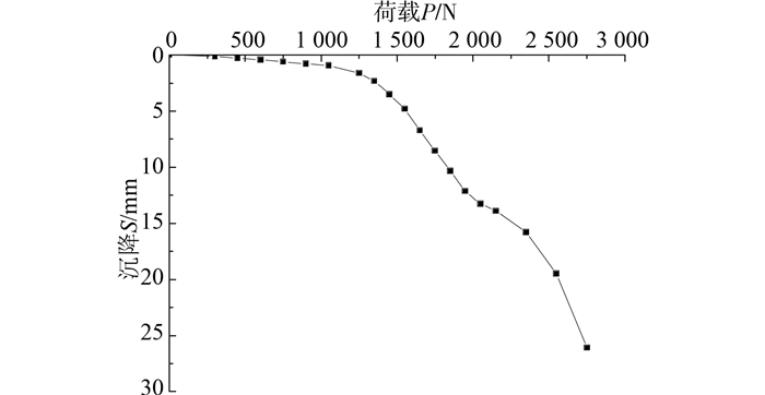 根据室内带沉渣单桩模型试验[11],桩长50 cm, 桩径20 mm,试验的荷载沉降曲线如图 3所示,数据见表 1,用本文方法确定其极限荷载。