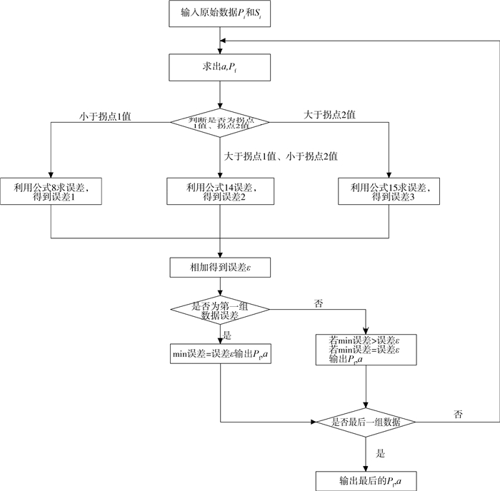 式中Pi、Si为实测数据。因此式(19)是未知参数Pf和a的函数,故引入向量