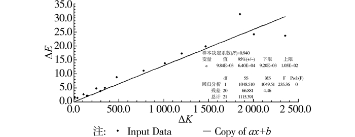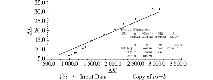 通过对数据的进一步拟合,得到日光总色差(ΔE)与色温差(ΔK)之间的函数关系式: