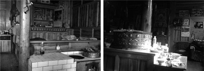 由于冬季较低的室内外温度,藏居住户采取生活空间的转移来适应寒冷的冬季。在当地,小起居室是藏族传统民居中重要的活动空间。由于小起居室冬季通过烧水及炊事余热加热火炕取暖,内部温度较高,空间非常暖和,因此小起居室在全天大部分时间取代了传统意义上的客厅而成为家庭活动的空间,它不仅仅承担普通的炊事功能,也成为家庭所有人的公共活动聚会空间[8]。这成为了适应热环境而形成的独特的文化习惯。
