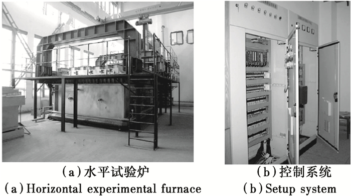 试验在东南大学火灾试验室进行,涉及的设备主要包括火灾试验炉、钢材拉伸试验机。火灾试验炉为大型水平试验炉(图 1),以天然气为燃料。组合梁的静力集中荷载采用千斤顶施加。