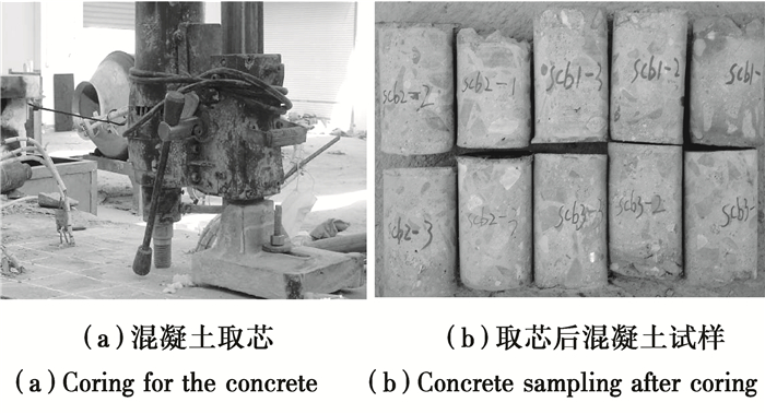 由于混凝土板底部直接受火,混凝土受损较严重,取芯时,板底部混凝土发生了破损现象,见图 25(b),后期混凝土强度试验用芯样试件均以去除这部分破损混凝土后并用磨光机进行端面处理后加工而成。