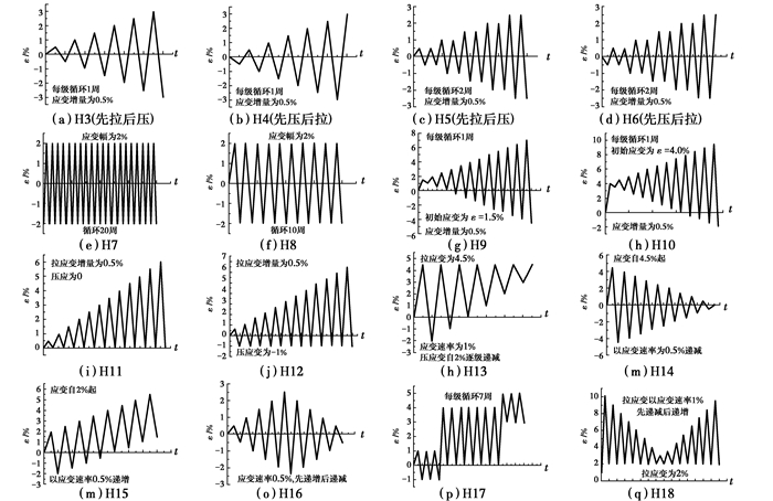 2) 采用随动强化模型模拟材料在循环荷载作用下的响应所得拟合参数,运用大型通用有限元软件ABAQUS对16种不同循环加载制度下的循环加载试验的模拟效果较好,适用于工程实际。