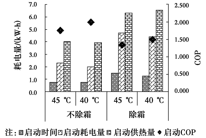 1) 对于启动阶段来说,受室外温度、初始温度以及设定温度的影响。其中, 冬季大部分启动时间在45 min以内;起始温度提高,启动时间将大大缩短,最大功耗平均下降20%,且初始温度对COP的影响较设定温度更加明显。