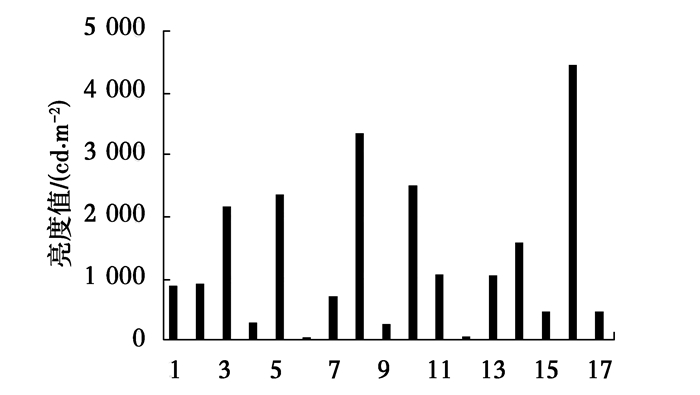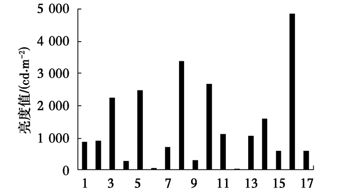 经现场测试,将17处LED广告屏的数据进行统计可得到各LED屏侵扰光对应平均亮度,如表 6所示。