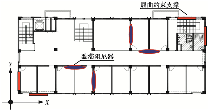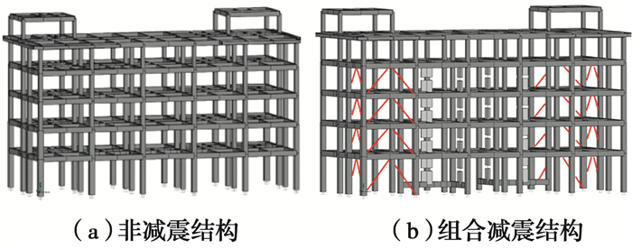 消能减震技术[1]是指在建筑结构的特定部位设置消能装置,通过该装置吸收、耗散输入结构的振动能量,从而减小结构的地震反应。消能装置根据不同的工作原理可分为位移型消能器和速度型消能器[2],其中,屈曲约束支撑(buckling restrained brace,BRB)与黏滞阻尼器(viscous damper,VD)分别为位移型消能器和速度型消能器的典型代表。目前,工程中应用消能减震技术时,大多采用单一类型阻尼器进行结构抗震设计[3-6],而对组合使用BRB和VD减震技术的研究则较少。