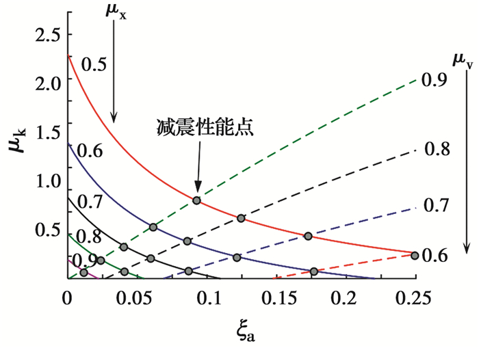 重复步骤1)~步骤4),可求得位移比μx及剪力比μv不同取值下减震性能点组成的减震性能曲线,如图 5所示。