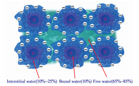 造纸污泥中的水分为游离水、结合水和胞腔水3种形式(如图 1所示),其中最难脱除的是结合水和胞腔水[32]。重力沉降法可以有效地脱除游离水;过滤离心法可以脱除结晶水;而胞内水通常需要通过干燥蒸发等方法去除,处理难度大且能耗高。