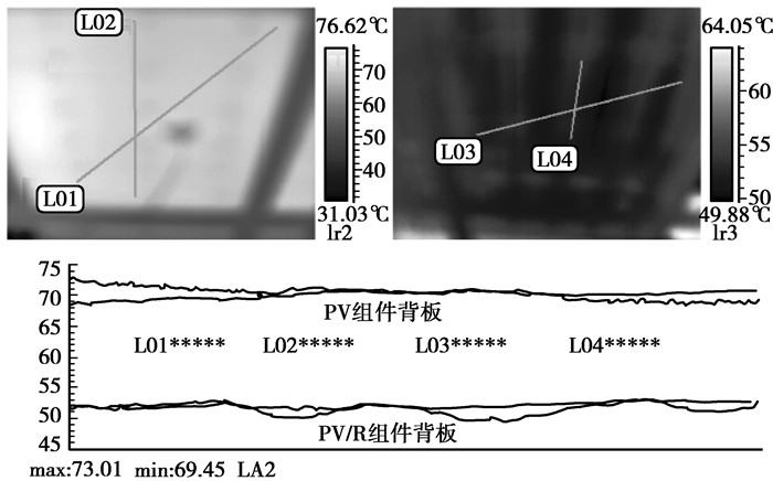 由红外拍摄PV/R及PV组件背板温度分析,如图 10所示。