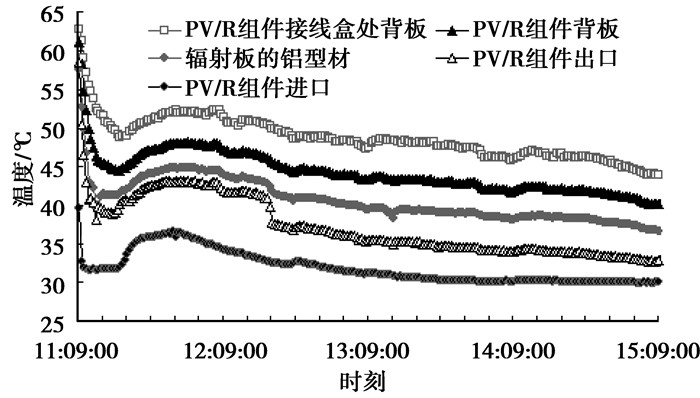 通过PV/R组件各处的测温点测得的温度,其各层的温度分布,如图 11所示。