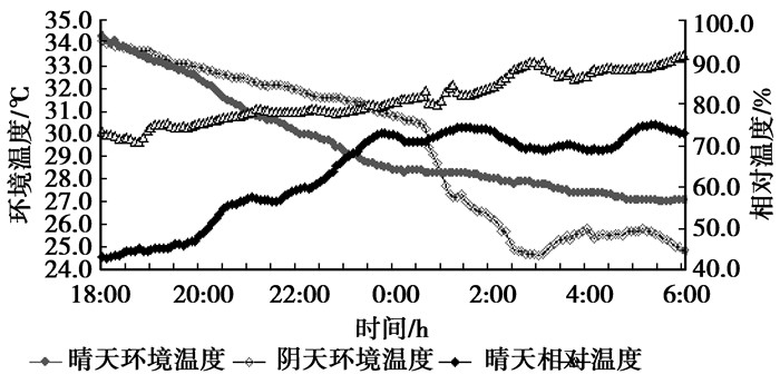 夜间制冷期间,选取典型晴天和阴天进行分析,其气象参数,如图 13所示。