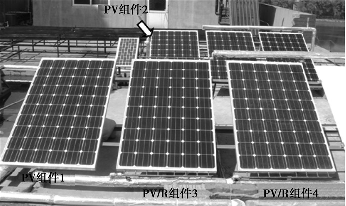 实验选取2块PV组件,2块PV/R组件进行对比测试分析,如图 3所示。
