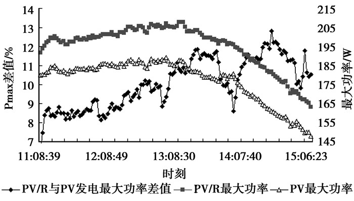 图 7 PV/R组件与PV组件的瞬时功率及差值图 |