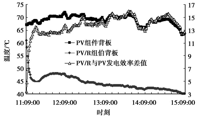 根据式(1),已知PV/R与PV组件背板温度,可计算其发电效率差值,PV/R组件同比于PV组件,发电效率提高11%~16%,如图 8所示。
