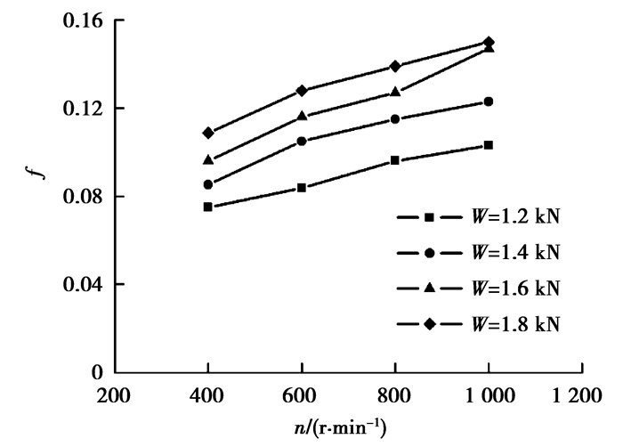 图 4 螺旋槽水润滑轴承摩擦系数曲线(无泥沙) |