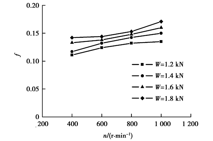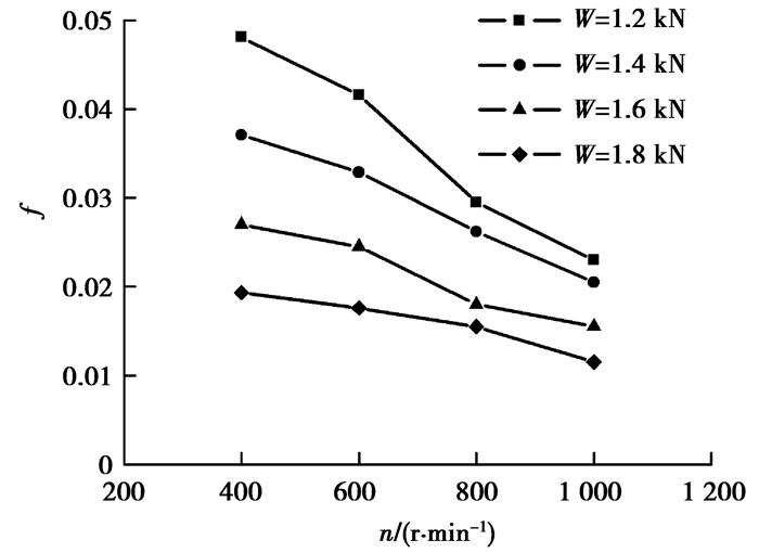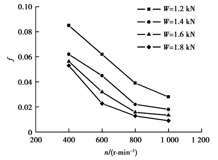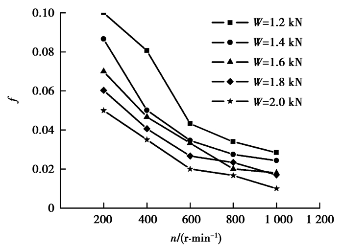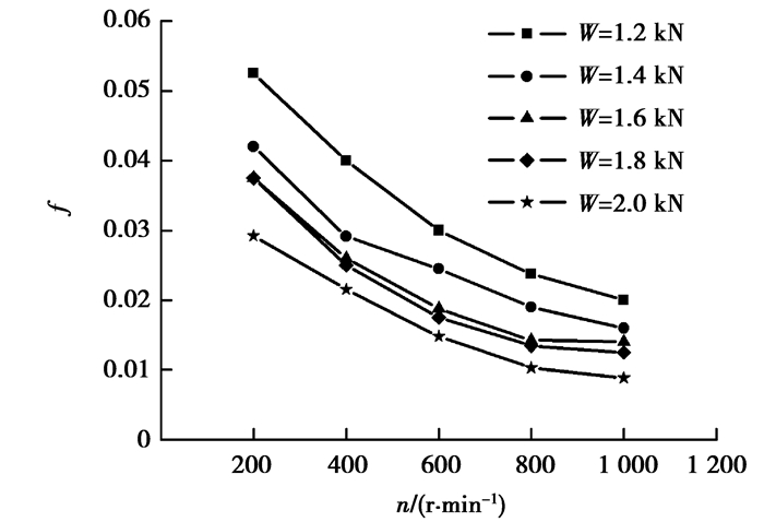 图 5 直槽水润滑轴承摩擦系数曲线(无泥沙) |