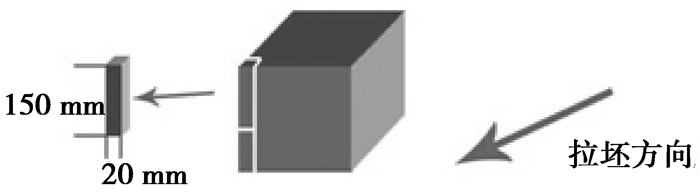 1.2 试样加工试样取自某厂生产的断面为180 mm×180 mm的方坯。正常生产工艺下,用火焰切割沿拉坯方向取300 mm长的连铸坯,并对其进行机械加工,如图 1所示。
