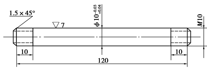 垂直于拉坯方向,将连铸坯加工成钢条(毛试样),其规格为20 mm×20 mm×150 mm,每个钢种数量为60根,共计180根。然后用车床加工成拉伸试样,其规格如图 2所示。
