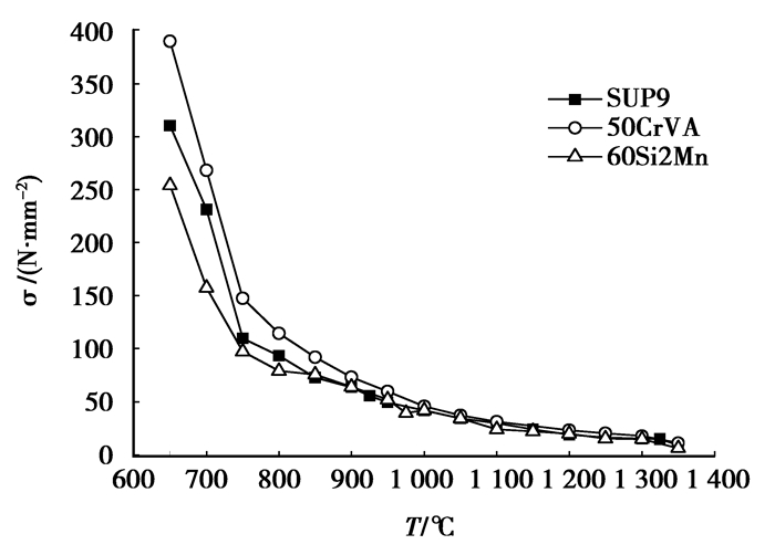 弹簧钢是制造业中应用较为广泛的特殊钢种,用于制造各种截面的重要弹簧,如汽车板簧、螺旋弹簧等,其连铸坯质量对后续轧制工序和最终产品的质量有重要影响。近年来,国内外开发了多种牌号的弹簧钢,使得弹簧钢越来越向着高强度、高疲劳寿命方向发展,典型的钢种有Cr-Mn系、Cr-V系、Si-Mn系等。笔者选取合金弹簧钢中具有代表性的钢种,即Cr-Mn系的SUP9、Cr-V系的50CrVA以及Si-Mn系的60Si2Mn,对上述钢种的高温力学性能进行研究。