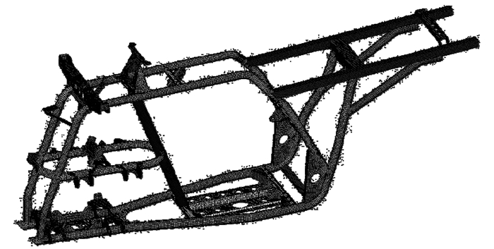 图 2 全地形车车架有限元模型 |