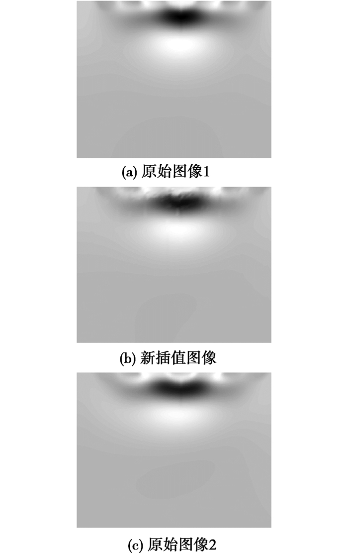 为验证匹配点灰度插值算法的有效性,取连续的3幅原始图像记为I1、I2、I3。由两幅原始图像I1和I3插值出新的第2幅图像,并以原图I2为标准和线性插值方法及文献[16]中提到的形状插值得到的结果进行比较。
