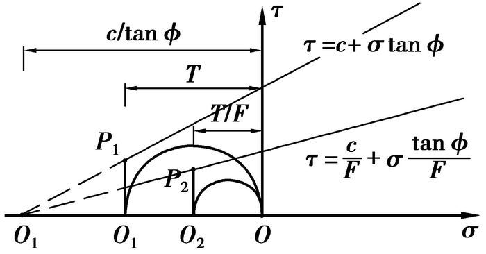 | $ c' = \frac{c}{F},\tan \varphi ' = \frac{{\tan \varphi }}{F},T' = \frac{T}{F}。$ | (6) |