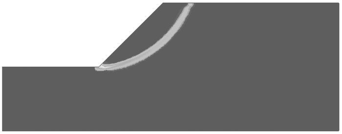 采用“抗拉强度折减”和“抗拉剪强度折减”计算得到的潜在破坏面的位置如图 7(a)所示,比较接近A-A截面位置;采用“抗剪强度折减法”计算得到的潜在破裂面的位置如图 7(b)所示,显然不正确。