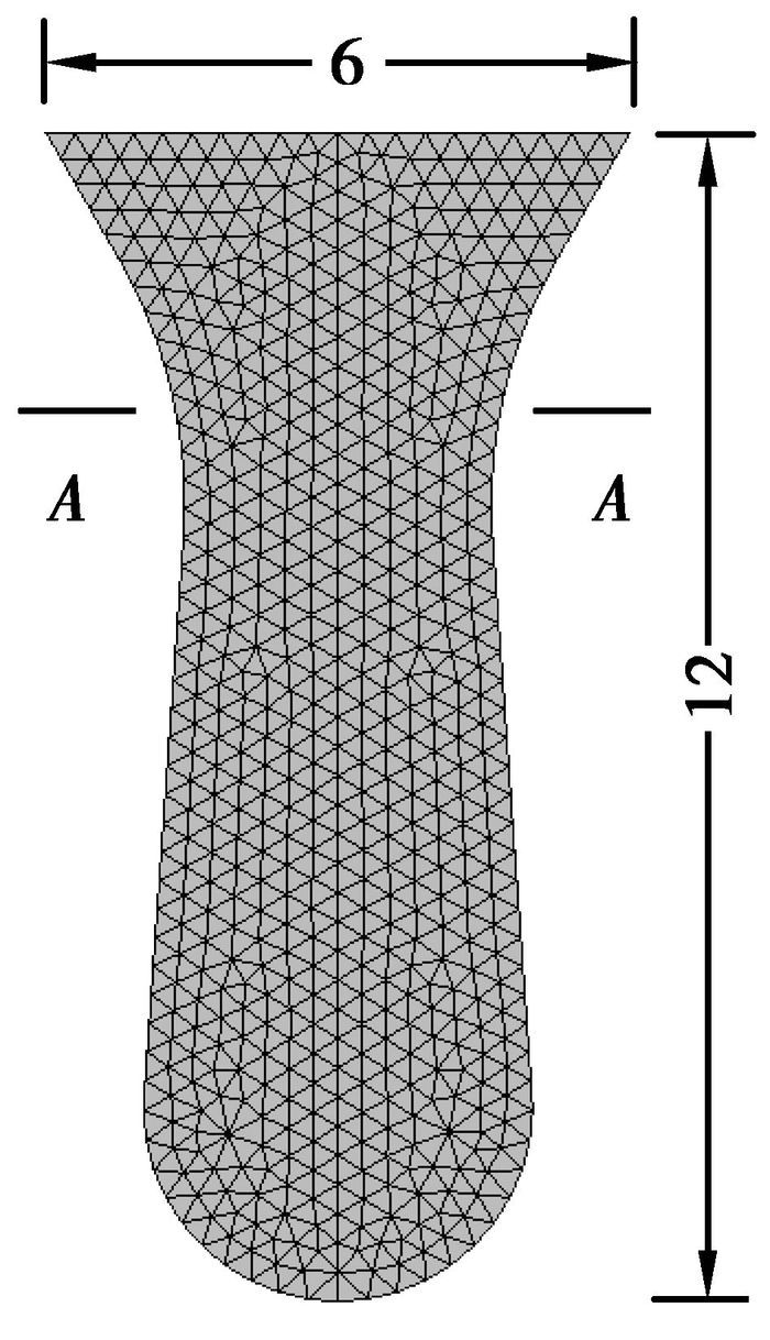 显然,钟乳石是纯粹受拉的结构,其稳定性取决于材料的抗拉强度。由材料力学的知识可知,算例钟乳石最薄弱、最容易发生破坏的位置显然应该在图 6中A-A截面的位置。