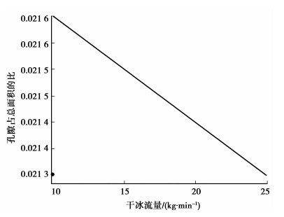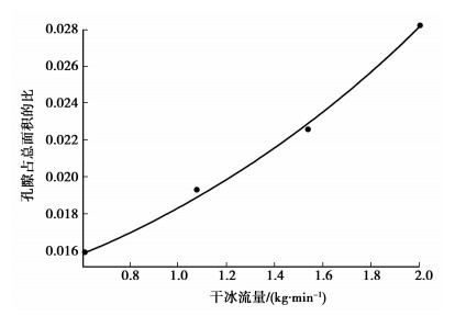 图 2 干冰流量与表面孔隙率增长量的关系 |
