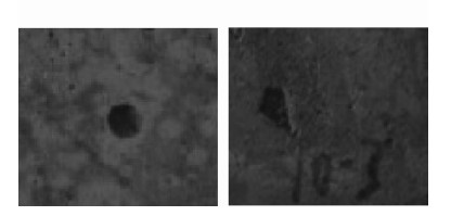 图 3 干冰流量小于与达到2 kg/min时孔隙的对比 |