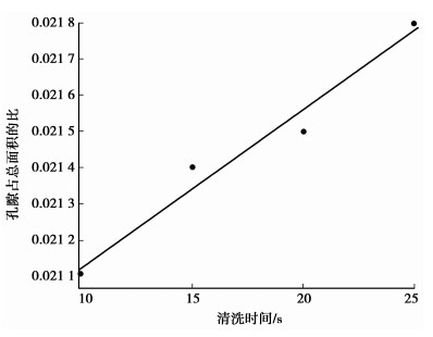 图 5 清洗时间与表面孔隙率增长量的关系 |