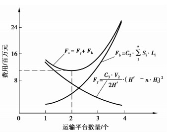 即每年拆除临时排土桥产生的二次剥离费用Fb随运输平台数量n的增加而增加。
