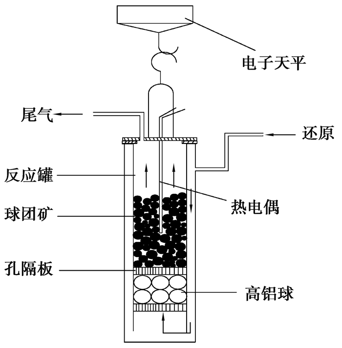 直接还原是将铁矿石在低于熔化温度下被直接还原成固态金属产品的炼铁技术,它有效地克服了传统高炉炼铁高能耗、流程长等弱点, 已成为钢铁冶炼技术的研究热点[1-3]。根据还原剂形态的不同,可将直接还原分为气基法和煤基法。气基竖炉炼铁产量达到了直接还原铁总产量的90%以上[2]。而竖炉内还原铁矿石的主要成分则是H2及CO。采用CO及H2来还原铁矿,还原气循环利用率高,在适当情况下还可以增加H2含量、降低CO含量,减少了CO2的排放[4-5]。H2和CO还原铁矿石过程中的反应动力学,是当前研究竖炉含铁球团还原反应过程的重要课题[6-17]。而这两种气体混合后竖炉内还原铁块石的动力学模型还未见报道[9, 11, 13, 14]。笔者结合竖炉内球团矿还原模拟实验,通过分析CO和H2还原球团矿过程中的反应速率,提出混合气还原时的反应动力学模型,为研究竖炉内球团矿还原反应动力学提供一定的理论参考。