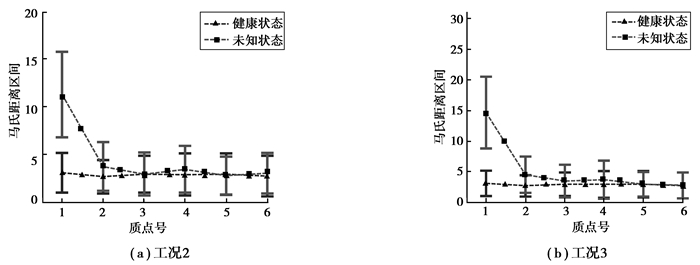 采用本文方法计算工况2和工况3下的马氏距离区间如图 5所示,各质点处的OR指标如表 3所示。