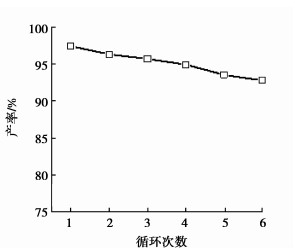 图 3 [GlyH]1.0H2.0PW12O40催化剂的重复使用性 Figure 3 Results of repeated use of the [GlyH]1.0H2.0PW12O40 catalyst |