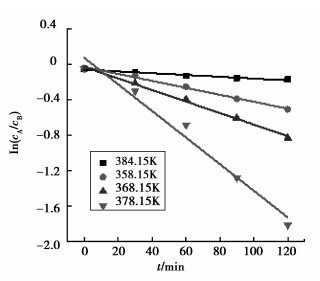 根据不同温度对ln cA/cB和反应时间t作图(图 5),求得各相应温度下速率常数k。结合Arrhenius公式