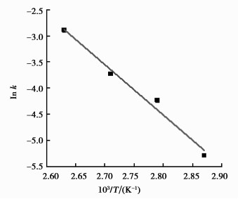 图 6 ln k vs 103/T的阿乌尼斯方程拟合图 Figure 6 Arrhenius plot of lnk versus 103/T |