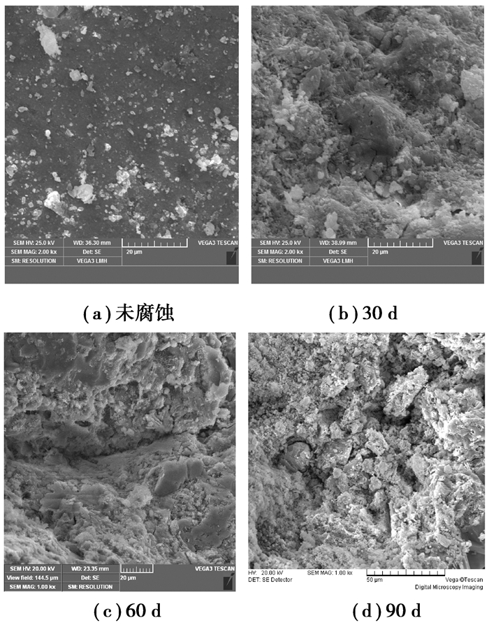 图 3 受力工况腐蚀不同天数微观形貌图 Figure 3 Microscopic images of stressed corrosion for different days |