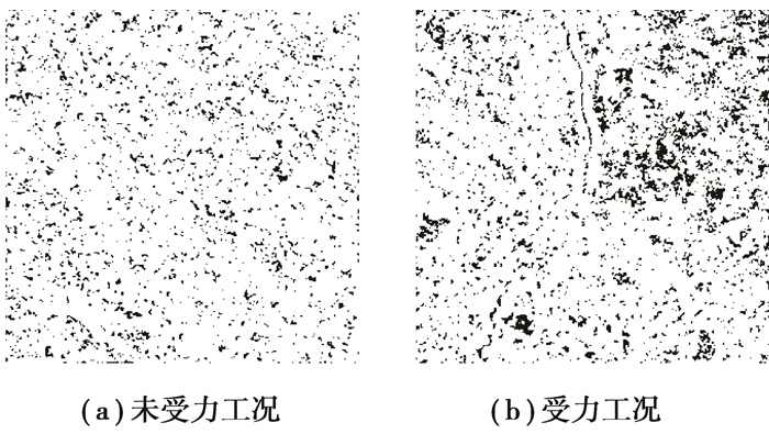 3 结论1) 通过提取不同腐蚀时间下的微观孔隙特征,发现随着腐蚀时间的增加,受力和未受力工况下锚固体的孔隙率均成线性增大,孔隙数量随着腐蚀时间的增加逐渐减少,孔隙平均面积随腐蚀时间的增加而增大。腐蚀后期受力工况下的锚固体与未受力工况的锚固体相比,孔隙数量更少,孔隙面积和孔隙率更大。