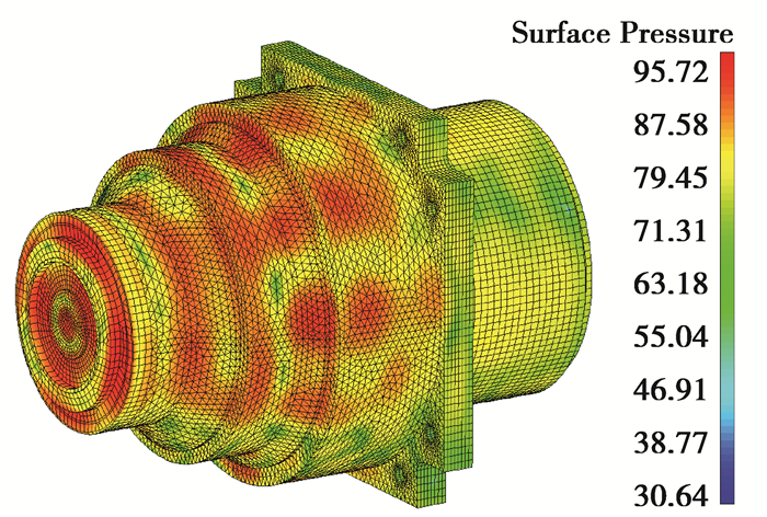 图 10 齿轮箱表面声压云图 Figure 10 The surface sound pressure contour of gearbox |