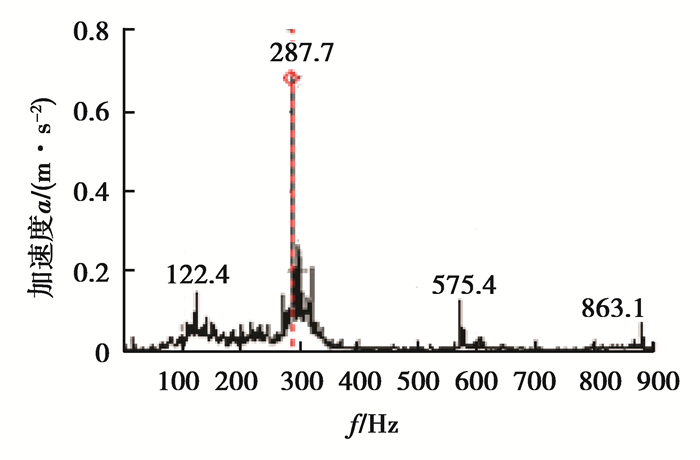 图 14 实测振动加速度频域曲线 Figure 14 Test curve of vibration acceleration in frequency domain |