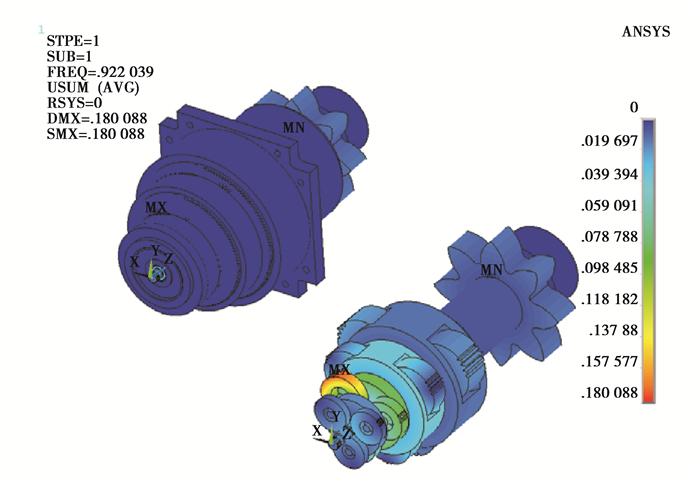 图 3 齿轮箱第1阶固有振型 Figure 3 The 1st order vibration mode of gearbox |