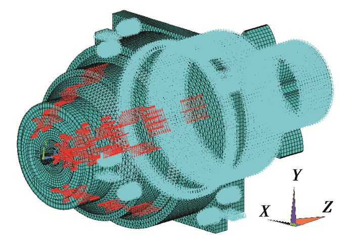 图 6 齿轮箱振动响应有限元模型 Figure 6 Finite element model of gearbox for vibration response |