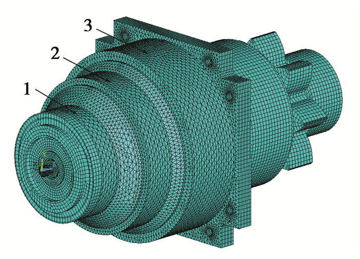 图 2 齿轮箱振动模态分析有限元模型 Figure 2 Finite element model of gearbox for mode analysis |