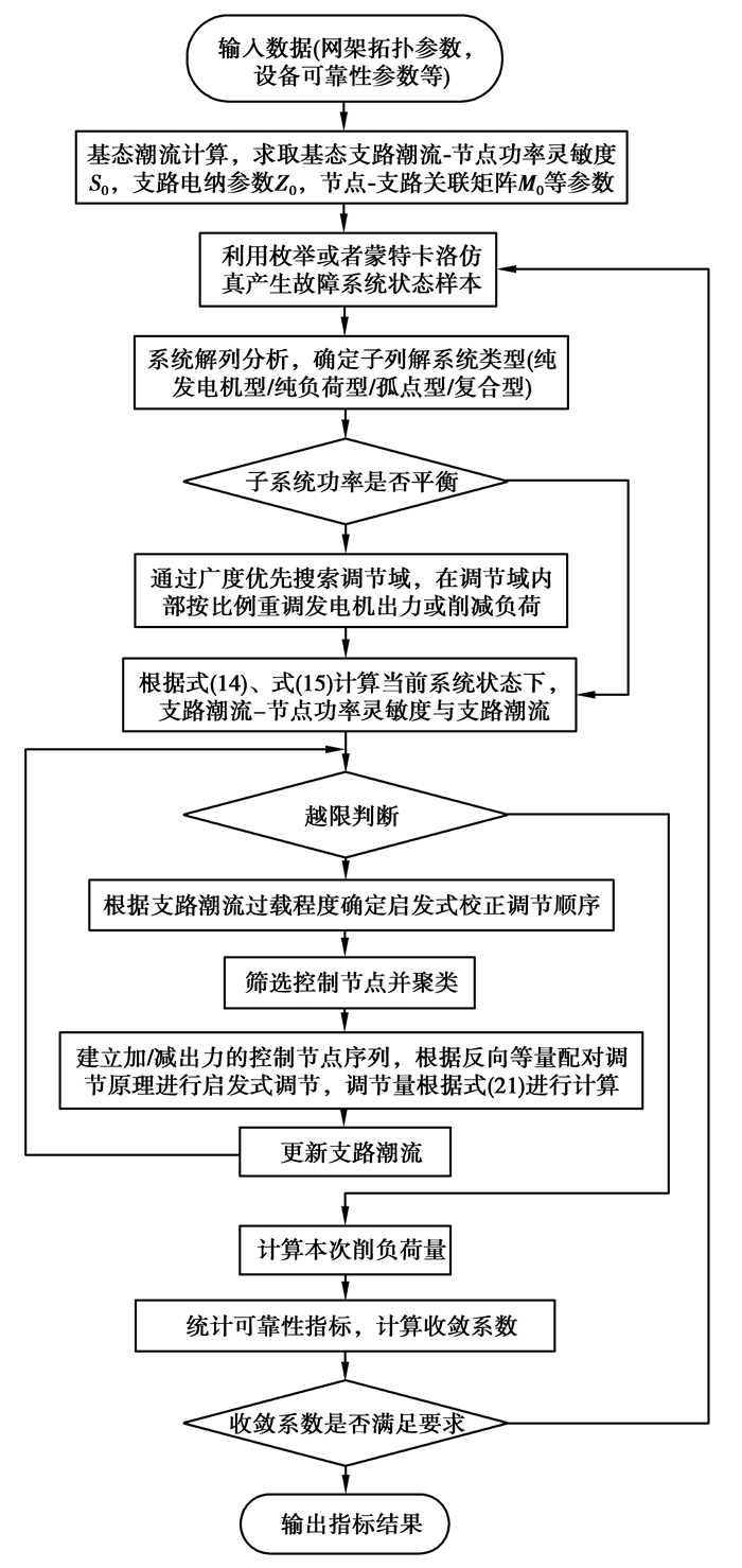 图 2 电网可靠性评估流程 Figure 2 Process of reliability evaluation for power grid |